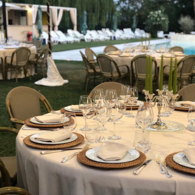 - Noleggio attrezzature catering: tavoli, sedie, tovagliato, piatti, bicchieri e molto altro, con possibilità di consegna e trasporto.